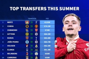 今夏球員轉(zhuǎn)會(huì)費(fèi)排名:維爾茨1.25億歐居首,庫(kù)尼亞、祖比門迪前三