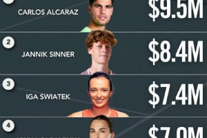本賽季網(wǎng)球獎金榜:阿卡950萬美元領(lǐng)跑,薩巴倫卡700萬美元第四