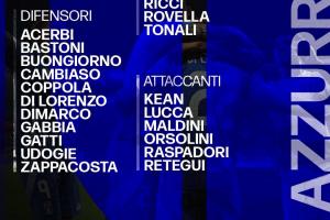 后衛(wèi):阿切爾比(國米)、巴斯托尼(國米)、布翁喬爾諾(那不勒斯)、坎比亞索(尤文)、庫博拉(維羅納)、迪洛倫佐(那不勒斯)、迪馬爾科(國米)、加比亞(米蘭)、加蒂(尤文)、烏多吉(熱刺)、扎帕科斯塔(亞特蘭大)
