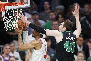 本場比賽,凱爾特人中鋒科內(nèi)特成為奇兵,進攻端吃餅一個不丟,防守端尤其亮眼,各種籃下送蓋帽,第三節(jié)5封蓋幫助球隊拉開比分。