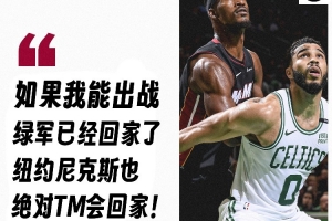 值得一提的是,去年巴特勒在熱火時(shí)因傷缺席了對(duì)凱爾特人的首輪比賽,熱火1-4不敵對(duì)手出局。在一則視頻中巴特勒喊話綠軍和尼克斯:“如果我能出戰(zhàn),波士頓現(xiàn)在已經(jīng)回家了,(東決)紐約也絕對(duì)TM會(huì)回家。”