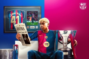 海報(bào)中,年僅17歲的亞馬爾已坐擁眾多冠軍獎(jiǎng)杯和個(gè)人獎(jiǎng)項(xiàng),1座歐洲杯、兩座西甲聯(lián)賽冠軍、1座國王杯、1座西班牙超級(jí)杯、金童獎(jiǎng)、科帕獎(jiǎng)等等。