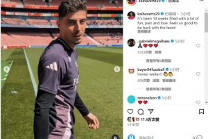 哈弗茨社媒寫道:“這是充滿歡樂、痛苦和愛的14周,回到球隊的感覺真好!”