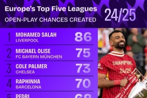 本賽季五大聯(lián)賽運(yùn)動(dòng)戰(zhàn)創(chuàng)造機(jī)會(huì)排名: