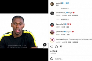 體育資訊5月15日訊 喬納森-戴維在個(gè)人社交媒體發(fā)布視頻,告別了里爾。
