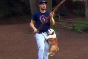 克萊拿Rocco當(dāng)啞鈴,鍛煉手臂