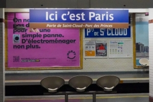 距離巴黎圣日耳曼與國(guó)際米蘭的歐冠決賽僅剩數(shù)小時(shí),整個(gè)巴黎的氣氛逐漸升溫,甚至連地鐵站名也加入了這場(chǎng)狂歡。在通往王子公園球場(chǎng)的圣克魯門(mén)站,巴黎大眾運(yùn)輸公司更換了站名標(biāo)識(shí),原本的“圣克魯門(mén)”被替換為“這里是巴黎”,以此聲援這支有望首奪歐冠的巴黎球隊(duì)。當(dāng)然,原站名仍以小字號(hào)標(biāo)注在下方。