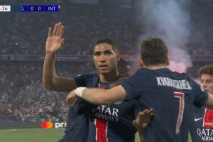 體育資訊06月01日訊 北京時(shí)間6月1日3:00,歐冠決賽,巴黎對(duì)陣國(guó)米,第12分鐘,國(guó)米出現(xiàn)后防真空,維蒂尼亞直塞穿透,杜埃橫傳,阿什拉夫破門。