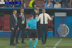體育資訊06月01日訊 巴黎vs國米第58分鐘,小因扎吉在場邊抱怨判罰,裁判到場邊對他出示了黃牌!