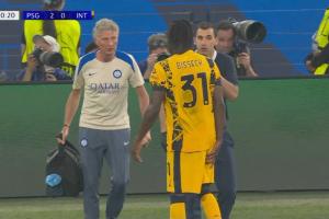 體育資訊06月01日訊 巴黎vs國(guó)米第71分鐘,才登場(chǎng)不久的比塞克傷退!他才剛登場(chǎng)不久!