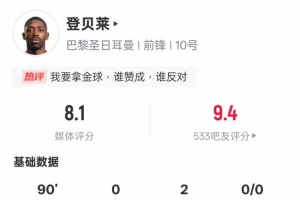 體育資訊6月1日訊 歐冠決賽,巴黎圣日耳曼5-0國(guó)際米蘭,登貝萊首發(fā)出戰(zhàn),送出2次助攻,3次關(guān)鍵傳球,但也錯(cuò)失1次進(jìn)球機(jī)會(huì),評(píng)分8.1。