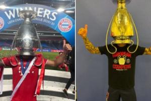 賽后巴黎后衛(wèi)盧卡斯-埃爾南德斯將獎(jiǎng)杯扣在頭上,復(fù)刻了5年前隨拜仁奪歐冠時(shí)的場(chǎng)景。