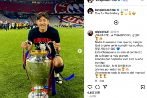 本場(chǎng)比賽李剛?cè)蔬M(jìn)入到巴黎大名單,不過(guò)他最終沒(méi)能獲得出場(chǎng)機(jī)會(huì)。賽后李剛?cè)矢律缑?,曬出和“大耳朵杯”的合影,并配文寫道:“史無(wú)前例的成就!”