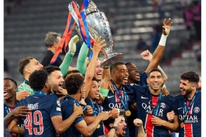 體育資訊6月1日訊 歐冠決賽,巴黎5-0擊敗國米,捧起冠軍獎杯。