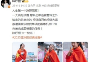 體育資訊6月1日訊 奪得亞洲田徑錦標(biāo)賽女子200米金牌后,陳妤頡更新社媒進(jìn)行了慶祝。