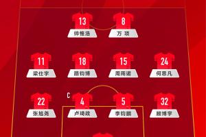 中國U16首發(fā):30-徐曾富、22-張旭堯、4-盧琦政、5-李鈞鵬、32-顧博宇、11-梁仕宇、18-路鈞博、15-周雨諾、24-何思凡、8-萬項、13-帥惟浩