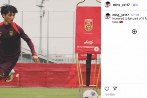 楊明洋在社媒寫道:“首次入選國家隊,非常榮幸能夠成為其中一員。”