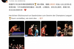 賽后,波爾在社媒寫道:“恭喜薩爾布呂肯奪得歐冠聯(lián)賽冠軍?? 難以想象,隨著樊振東的加入會讓這支隊伍變得多強!今天也是我的歐冠最后一場比賽,心情復(fù)雜,卻也無比美好。感謝大家,無論過去還是未來!??”