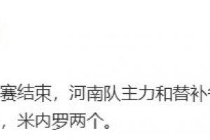 “河南隊(duì)與上海申花熱身賽結(jié)束,河南隊(duì)主力和替補(bǔ)各踢半場,0比3不敵對手,申花進(jìn)球的是安德烈一個(gè),米內(nèi)羅兩個(gè)。” ???