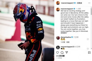 體育資訊6月2日訊 維斯塔潘更新社媒,談到了西班牙站正賽的碰撞事故。
