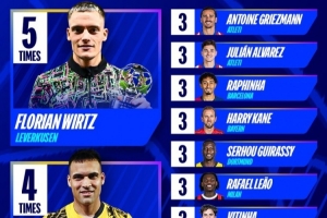 體育資訊6月2日訊 本賽季歐冠戰(zhàn)罷,據(jù)官方統(tǒng)計,維爾茨是獲單場最佳次數(shù)最多的球員,共計5次。