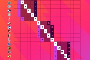 英超各隊(duì)理論可能最終排名: