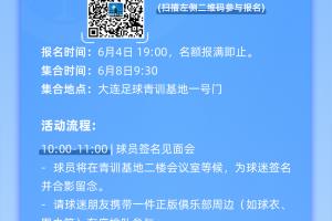 體育資訊06月04日訊 大連英博發(fā)布俱樂(lè)部 2025賽季首次球迷開(kāi)放日活動(dòng)公告,俱樂(lè)部將于6月8日舉行球迷開(kāi)放日活動(dòng)。