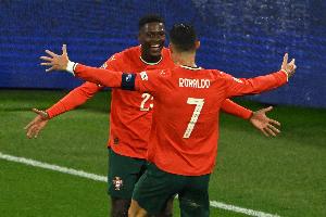 體育資訊06月05日訊 歐國聯(lián)半決賽,葡萄牙2-1擊敗德國,努諾-門德斯為葡萄牙送上制勝助攻,C羅輕松推射破門。