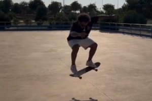 從視頻可以看到,馬塞洛玩滑板時(shí)秀了個(gè)躍起的動作。