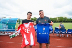 體育資訊7月8日訊 據(jù)申花官方消息,特謝拉觀戰(zhàn)申花07梯隊(duì)與拜仁世界隊(duì)的熱身賽,并與馬凱交換球衣。