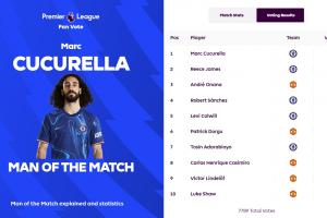 本場比賽庫庫雷利亞打進全場唯一進球,賽后他也當選英超官方評選出的本場最佳球員。他的得票率高達70.6%。
