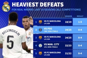 體育資訊7月10日訊 巴黎在世俱杯半決賽4-0血洗皇馬,轉(zhuǎn)會市場也列出了皇馬近10年來的慘敗紀錄,巴薩是銀河戰(zhàn)艦的最大苦主。