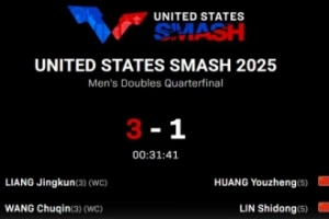 體育資訊7月11日訊 WTT美國(guó)大滿貫?zāi)须p,王楚欽/梁靖崑組合3-1擊敗林詩(shī)棟/黃友政組合,晉級(jí)四強(qiáng)。