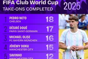 體育資訊7月11日訊 本屆世俱杯僅剩巴黎vs切爾西的決賽,數(shù)據(jù)機(jī)構(gòu)squakwa也統(tǒng)計(jì)了本屆賽事成功過(guò)人情況,切爾西3將上榜。