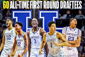 其中肯塔基大學有60個首輪秀、高居第一,像現(xiàn)役的就包含亞歷山大、濃眉、唐斯還有布克等人。而第二的是杜克大學,他們一共出品過59個首輪秀,第三的則是北卡的55個首輪秀。