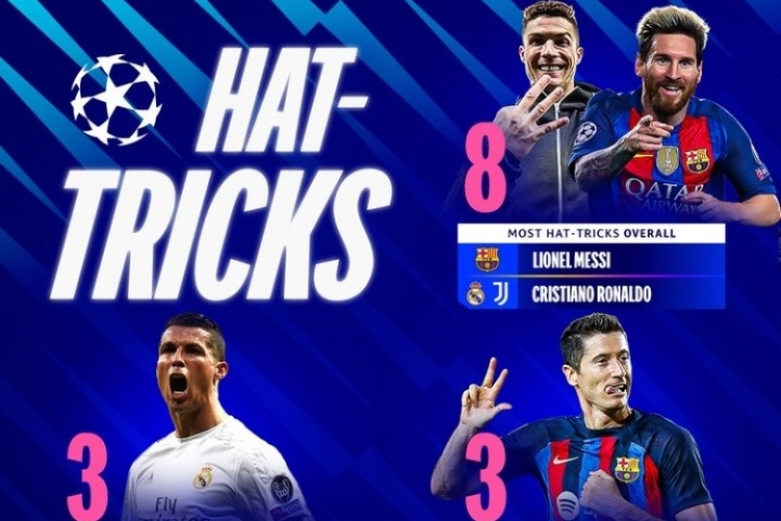 體育資訊07月11日訊 歐冠官方發(fā)布了歐冠歷史上球員上演帽子戲法的各項(xiàng)紀(jì)錄。