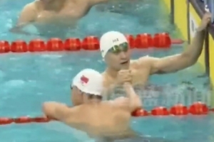 體育資訊5月17日訊 據(jù)中國(guó)藍(lán)新聞報(bào)道,擊敗孫楊之后,費(fèi)立緯與這位自己兒時(shí)的偶像握手互動(dòng)。