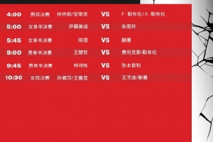 體育資訊7月12日訊 WTT美國大滿貫明天將展開單打半決賽和雙打決賽的爭奪,王楚欽、林詩棟出戰(zhàn)男單半決賽,陳熠、蒯曼出戰(zhàn)女單半決賽。此外,女雙賽場,王曼昱和孫穎莎將沖擊冠軍。