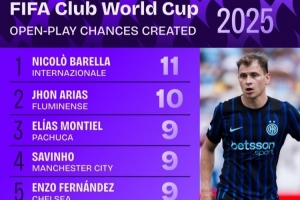 體育資訊7月13日訊 本屆世俱杯僅剩巴黎vs切爾西的決賽,數(shù)據(jù)機(jī)構(gòu)squakwa也統(tǒng)計(jì)了本屆賽事運(yùn)動(dòng)戰(zhàn)創(chuàng)造機(jī)會(huì)情況,巴雷拉力壓瓊-阿里亞斯居首。