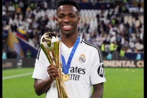 皇馬官方曬出維尼修斯本賽季贏得洲際杯的照片,并表示:“生日快樂,@維尼修斯!”