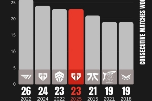 體育資訊7月13日訊 在MSI決賽戰(zhàn)勝T1后,GEN已經(jīng)取得了23連勝;