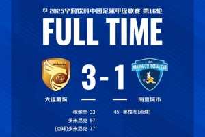 全場(chǎng)比賽結(jié)束,南京城市客場(chǎng)1-3不敵大連鯤城。