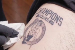 值得一提的是,季后賽開打前,曾有凱爾特人球迷在自己大腿上紋了“2025年凱爾特人總冠軍”紋身。