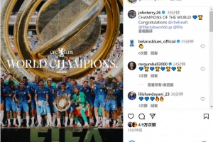 切爾西名宿、老隊長特里社媒曬出奪冠海報,配文:“世界冠軍,祝賀切爾西!”