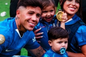 恩佐賽后與女友、兩個孩子合影留念,慶祝奪冠,并在社交媒體上轉(zhuǎn)發(fā)合照。