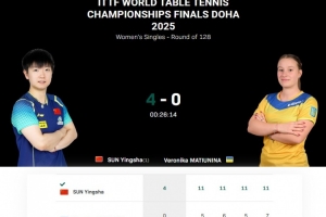 體育資訊5月17日訊 2025多哈世乒賽女單1/64決賽,孫穎莎4-0輕取烏克蘭球員韋羅妮卡-梅提妮娜晉級(jí)。