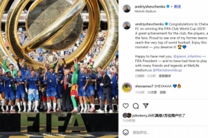舍甫琴科寫道:“祝賀切爾西贏得2025年世俱杯冠軍!?這是俱樂部、球員和球迷們的一大成就,看到我曾經(jīng)效力的球隊(duì)之一登上世界足球的巔峰,我感到非常自豪。享受這一刻吧——你們值得擁有!????