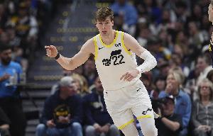 上半場(chǎng),爵士球員菲利波夫斯基表現(xiàn)出色,首節(jié)就砍下10分,并且作為內(nèi)線命中三記三分球,在14分半的時(shí)間里,投籃10中5,三分球6中3,拿到14分8籃板的數(shù)據(jù),正負(fù)值+8。