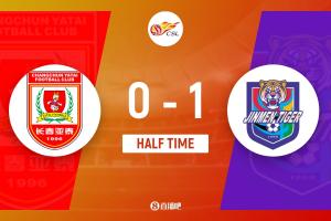 上半場(chǎng)比賽結(jié)束,長(zhǎng)春亞泰0-1天津津門(mén)虎。