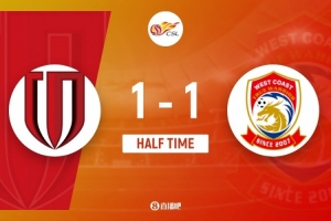 傷停補(bǔ)時5分鐘。上半場比賽結(jié)束,成都蓉城1-1青島西海岸。